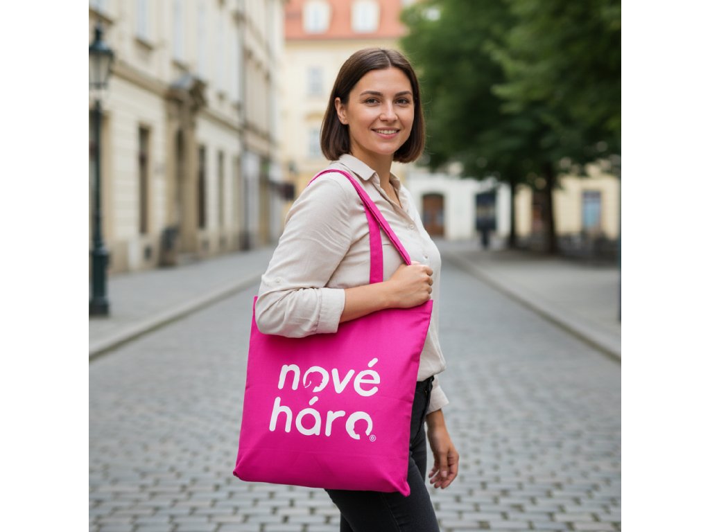 Praktická, stylová a s jasným poselstvím. Tato růžová plátěná taška s logem Nové háro je ideálním doplňkem pro každodenní nošení — a zároveň vyjadřuje podporu dětem, které procházejí onkologickou léčbou.
